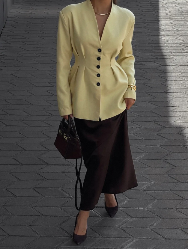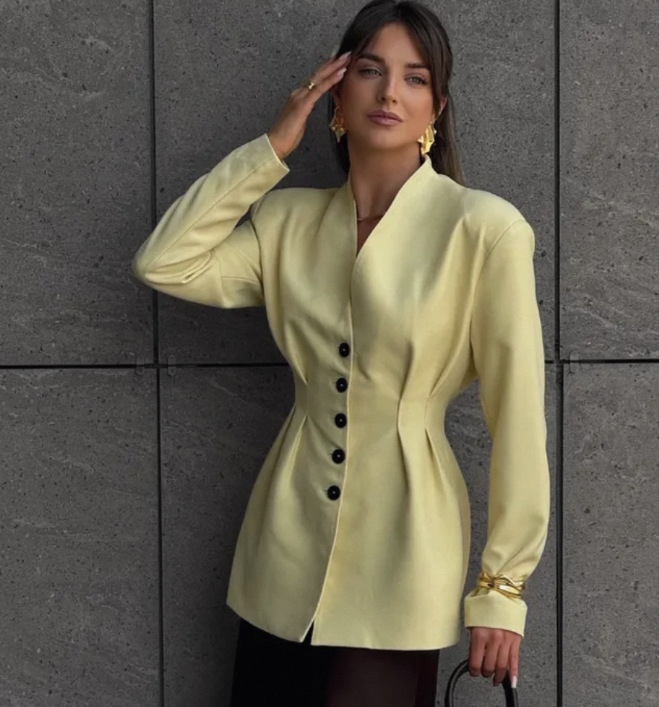 - Style: Art retro, single-breasted look