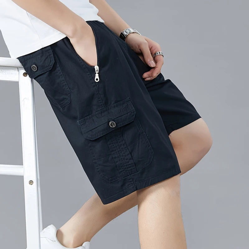Cotton Cargo Shorts Man Casual Solid Elastic Waist Drawstring Shorts Summer Breathable Lightweight Outdoor Leisure Short Pants